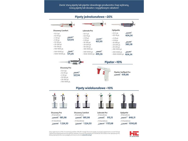 - na pipetę 8- lub 12-kanałową z serii Discovery Comfort, Discovery Pro, Labmate Pro lub Optipette (w zamian za zwrot używanej pipety automatycznej, niekoniecznie wielokanałowej),