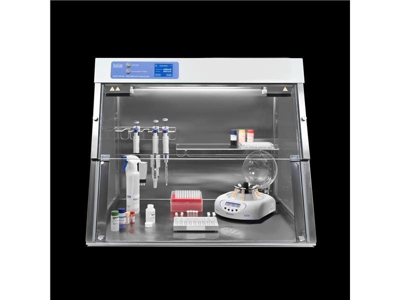 Komora wyposażona jest w przepływową lampę antybakteryjną UV, która zapewnia ciągła dekontaminację wewnątrz komory w czasie pracy. Lampa ta jest zalecana do pracy z amplikonami DNA/RNA.